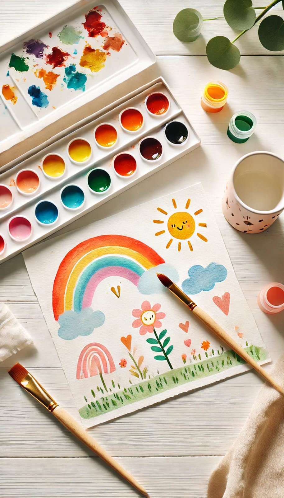 In unseren Kursen werden die Kinder mit Aquarellfarben auf Papier malen und lernen, wie sie mit einfachen Formen Kompositionen auf dem Blatt erstellen können. Durch verschiedene Techniken entdecken sie die Magie der Farben und die Kunst der Bildgestaltung.